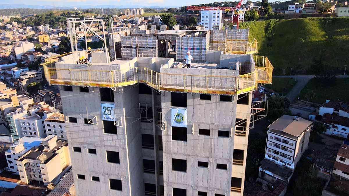 O prédio mais alto do Brasil em estrutura monolítica está em Ipatinga, e é da WR Construtora. Com paredes feitas totalmente em concreto, o Iguaçu Nobre, erguido entre os bairros Iguaçu e Cidade Nobre, alcançou nesta semana sua 25ª e última laje. Um feito para posicionar o Vale do Aço como destaque nacional na construção civil.
