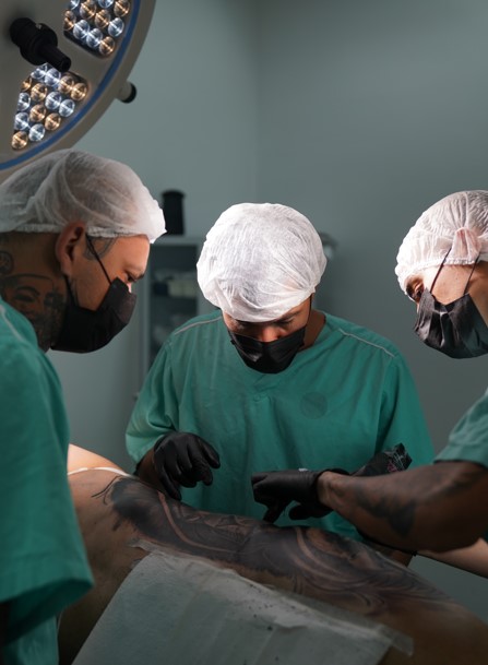 Combinando o campo médico com a arte da tatuagem, numa tentativa de proporcionar um maior conforto e segurança para os clientes, a inovação veio com a realização de um procedimento em um bloco cirúrgico, sob a supervisão de um anestesista e equipe de enfermagem.