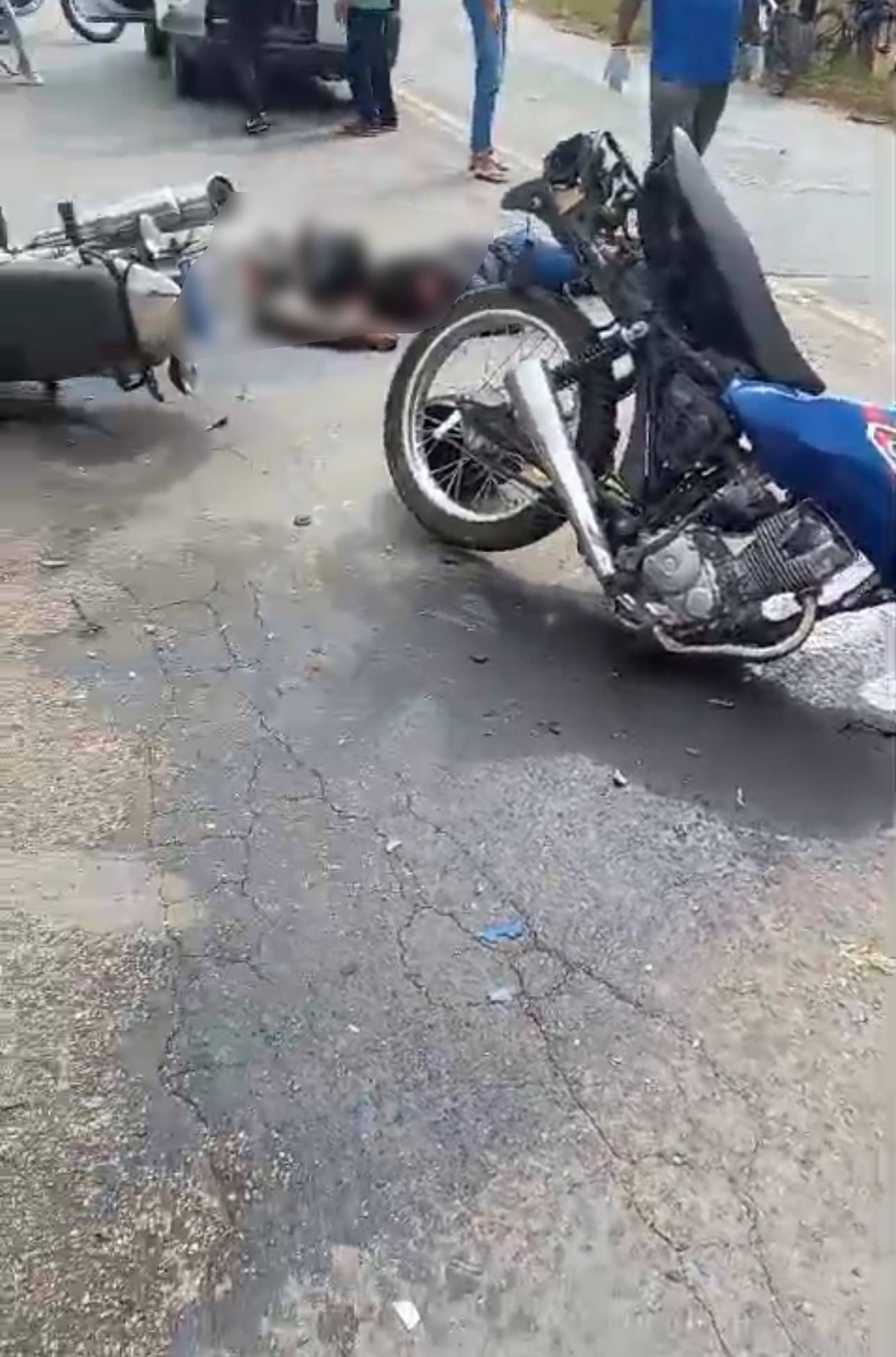 As duas motocicletas teriam batido de frente. O impacto foi tão forte que a frente de delas foi arrancada.