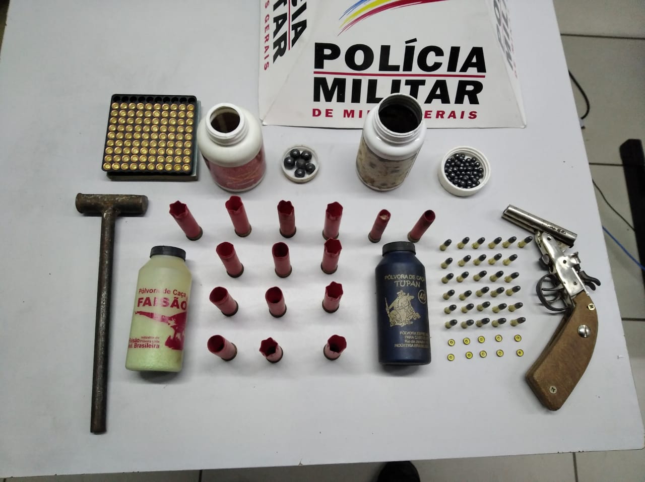 O homem estaria no quarto quando as guarnições chegaram e efetuaram a prisão, em diligência, a PM localizou a arma e diversas munições de diferentes calibres escondidos em cima de um guarda roupas.