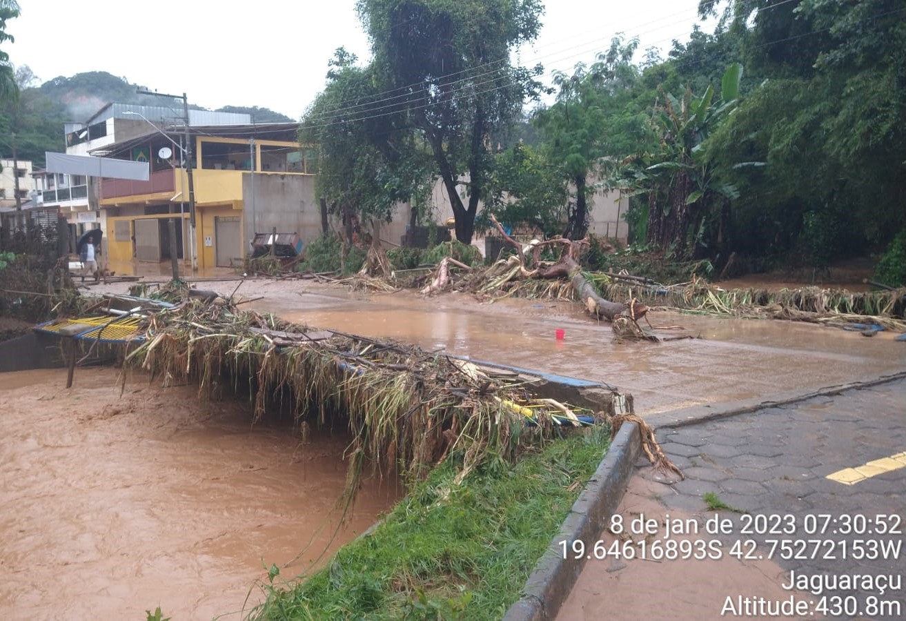 Aproximadamente 1500 pessoas sofreram com a devastação provocada pelas fortes chuvas, que caíram em todo território de Jaguaraçu, Minas Gerais, no último sábado (7) e domingo (8). Por conta disso, nessa segunda-feira (9), a Prefeitura da cidade decretou situação de emergência. A Administração Municipal estima um prejuízo de R$ 12 milhões.