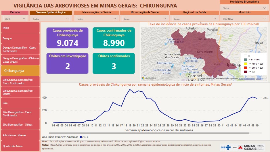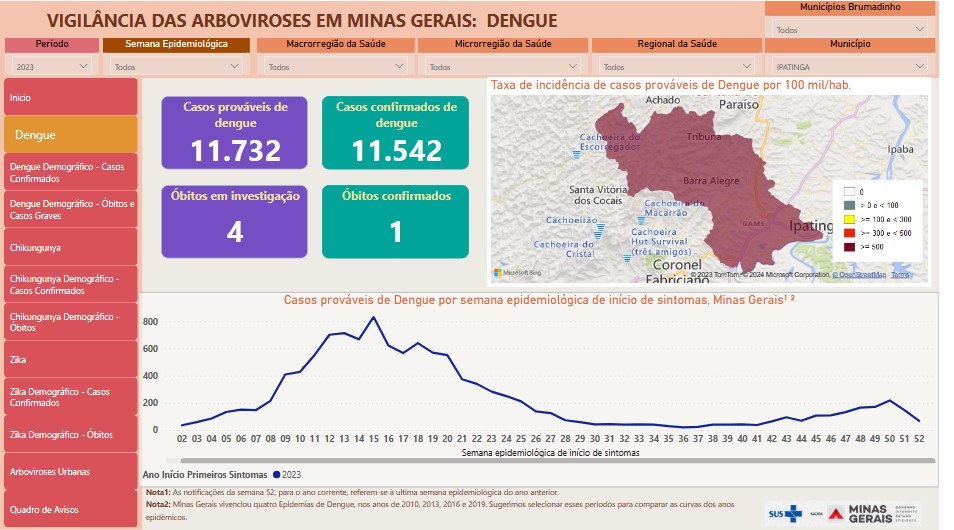 A prefeitura de ipatinga decretou situação emergência pelo alto índice de infestação do mosquito aedes aegypti e iminente perigo à saúde pública. Em 2023, 20.532 pessoas tiveram dengue ou chikungunya no município, ou seja, 9% da população de Ipatinga (227.731 habitantes). De acordo com números da Secretaria estadual de Saúde, foram 11.542 casos confirmados de dengue e morte. Já com o vírus que causa a chikungunya infectou 8.990 e provocou três mortes. Quanto à infestação do mosquito, o último levantamento (Lira), realizado em novembro, apontou um índice geral de 3,6 %, considerado “estado de alerta” pelo Ministério da Saúde.