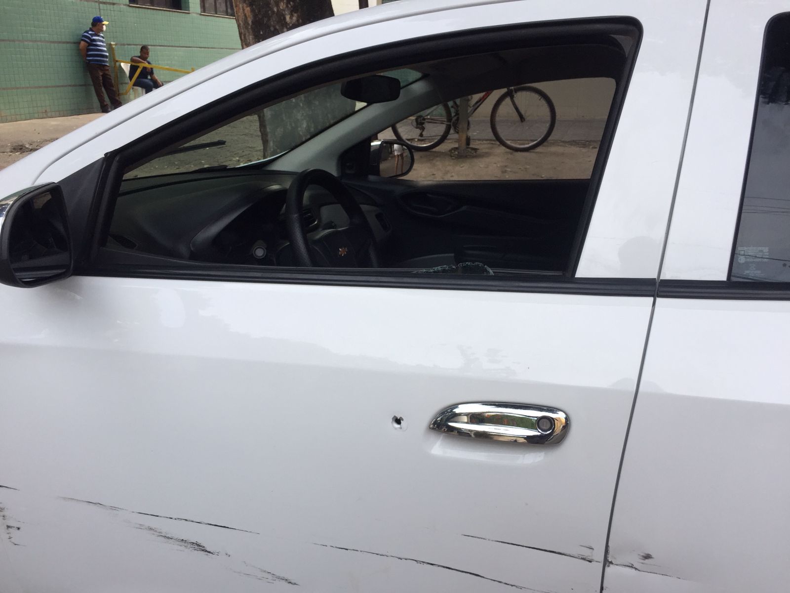 A Polícia Militar foi acionada para atender uma ocorrência de acidente no qual um veículo Ônix, de cor branca, tinha batido no portão de uma casa na rua Professora Maria Conceição Pimenta. No entanto, enquanto os militares se deslocavam para o local, eles foram informados que um homem baleado tinha dado entrada no Hospital Municipal.
