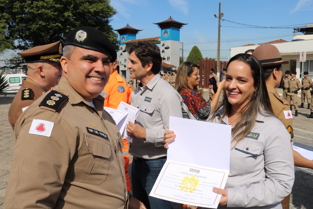 O Comando da 12ª Região de Polícia Militar (RPM) condecorou a Usiminas e o Instituto Usiminas com o Diploma de Colaboradores Beneméritos da Polícia Militar de Minas Gerais, durante a solenidade de comemoração dos 247 anos da PMMG, realizada na última terça-feira (09), no pátio do 14º Batalhão, em Ipatinga.