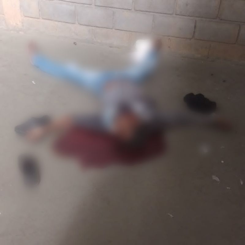 Ela foi encontrada em decúbito dorsal (barriga para cima), trajando uma calça jeans e um moletom cinza. A vítima tem uma perfuração no pescoço, aparentemente, provocado por uma faca.