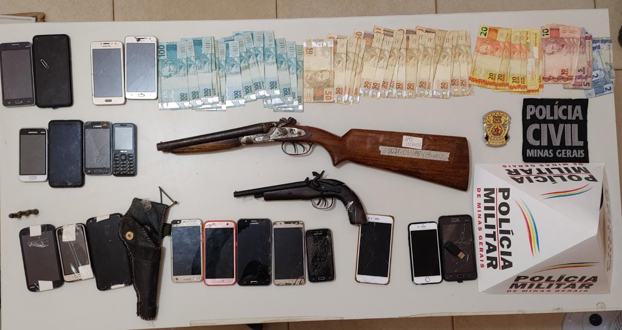 Na ação, as equipes policiais cumpriram oito mandados de prisão temporária e prenderam dois suspeitos em flagrante por posse ilegal de arma de fogo. Foram arrecadadas uma espingarda calibre 20 e uma chumbeira de dois canos. Além disso, um homem, que estava com porções de materiais semelhantes ao crack e à cocaína, foi autuado em flagrante por tráfico de drogas. Ainda durante a operação, foi apreendida quantia em dinheiro.