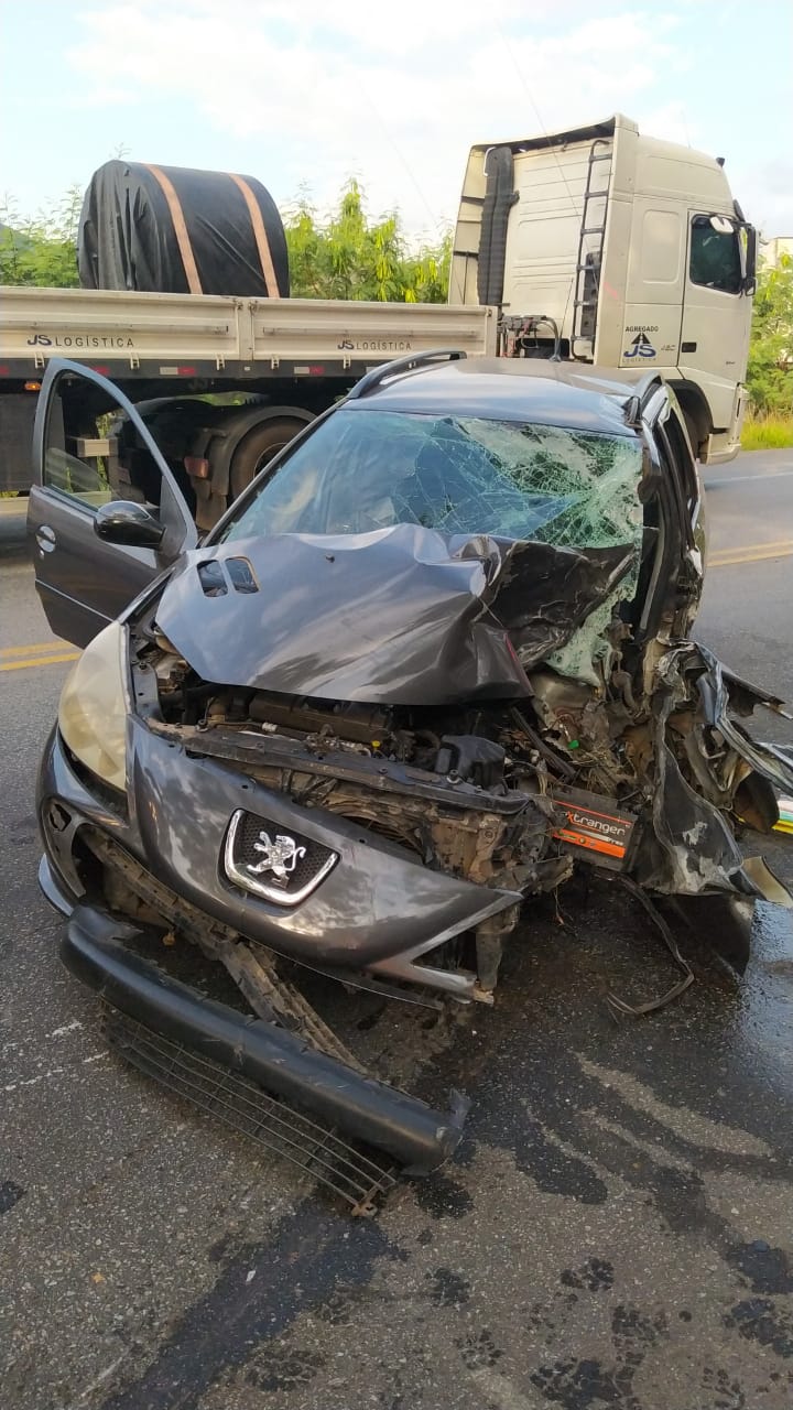 De acordo com informações repassadas pelo Corpo de Bombeiros, ao chegarem ao local, os militares encontraram a vítima, o condutor do automóvel Peugeot SW, consciente e orientado, com uma possível fratura de fêmur e joelho, preso nas ferragens.