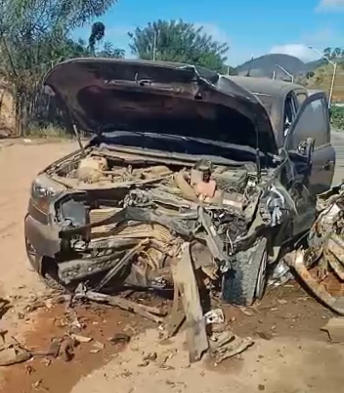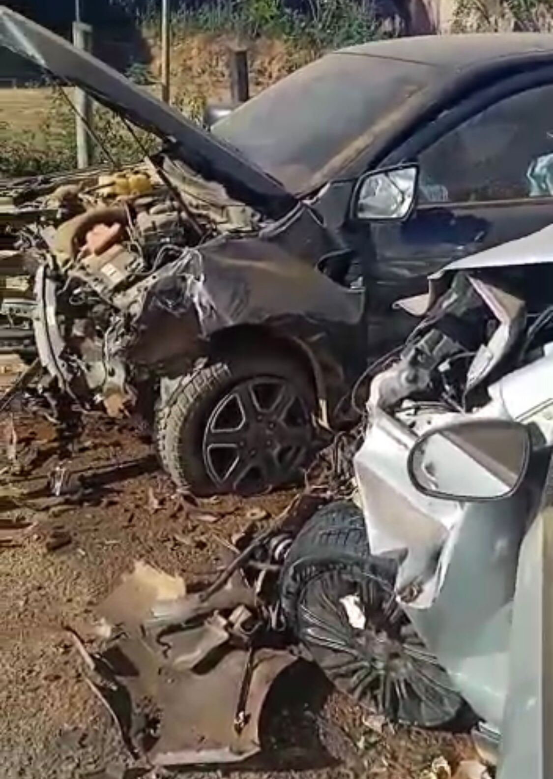 Uma câmera de monitoramento da cidade flagrou o momento exato do acidente. A caminhonete Ford Ranger, de cor preta, por motivos desconhecidos, invadiu a contramão e colidiu frontalmente com um Ford Siena que seguia no sentido contrário.