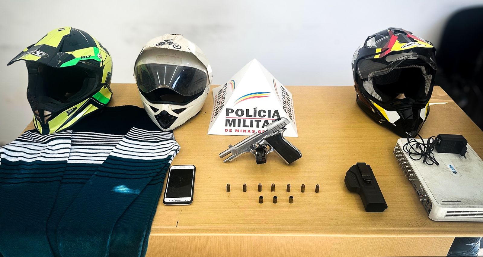 Após ininterruptas diligências envolvendo as equipes do 14º BPM, por meio de verificação de câmeras existentes nas imediações, foi identificada a autoria do crime, bem como o veículo utilizado. Em demais diligências, após as frações vizinhas serem cientificadas, foi identificado o possível destino de fuga dos autores, que seria a cidade de Guanhães.