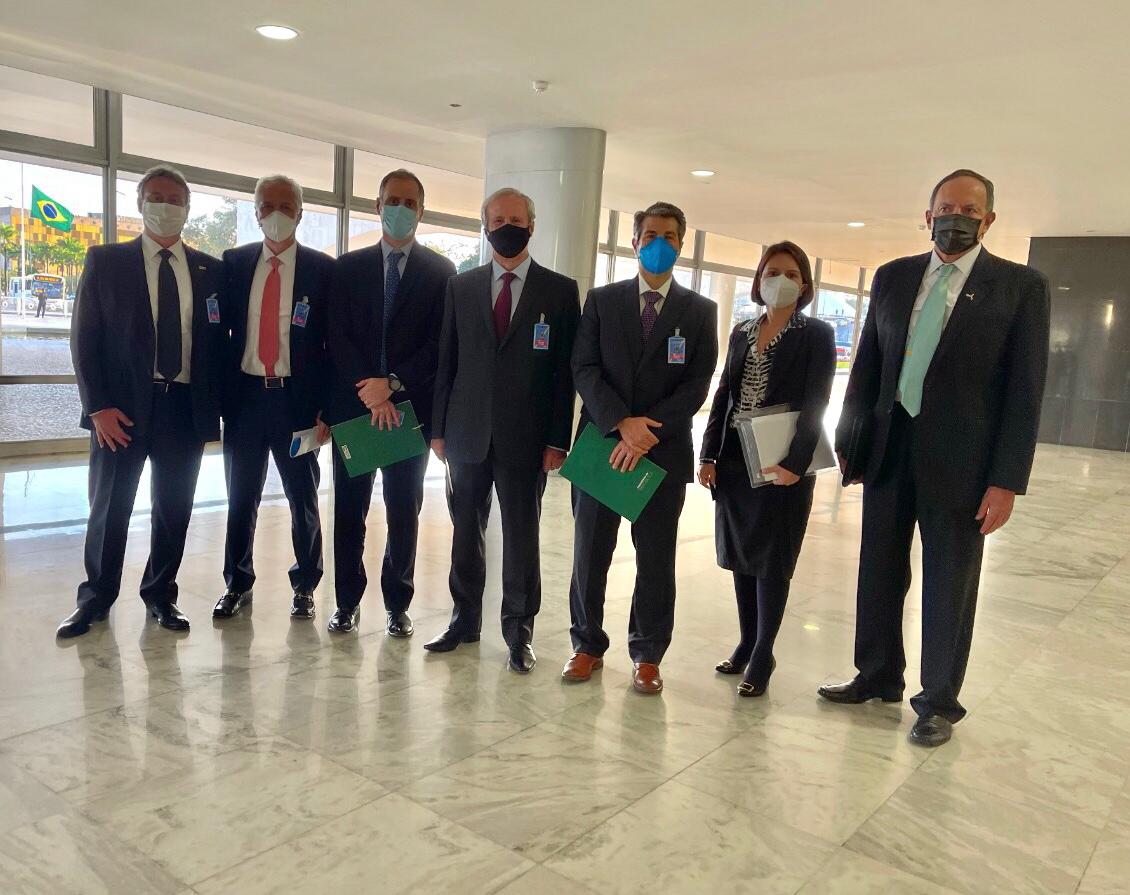 O presidente da Usiminas Sergio Leite de Andrade (ao centro da foto), conselheiro do Instituto Aço Brasil, destacou a importância do encontro e o “forte compromisso do Governo Federal com o crescimento da Indústria Brasileira”. O executivo informou que no encontro foram abordados temas referentes ao forte crescimento da Economia Brasileira em 2021, crescimento do consumo aparente de aço, Investimentos da Indústria do aço, abastecimento, Importação, exportação, projetos de Infraestrutura do Governo, gestão da Economia e outros temas.