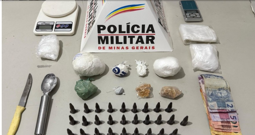 Militares receberam denúncias de que um homem, de 22 anos, e uma mulher, de 25, estavam comercializando drogas em uma praça da região. A equipe deslocou-se até o local e abordou os suspeitos, encontrando com eles uma quantia em dinheiro. Durante a revista, drogas foram localizadas jogadas na grama próxima, indicando que haviam sido descartadas no momento da chegada da polícia.