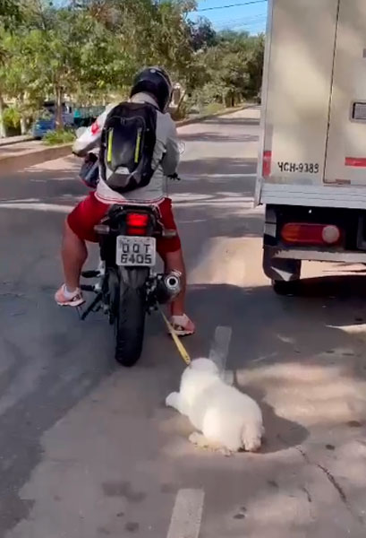 Aos militares, o homem alegou que não teve a intenção de ferir o animal e que teria o costume de levar o cão em um pet-shop, sempre o amarrando na motocicleta e seguindo devagar. No dia, o animal teria sido arrastado e ele não teria percebido.