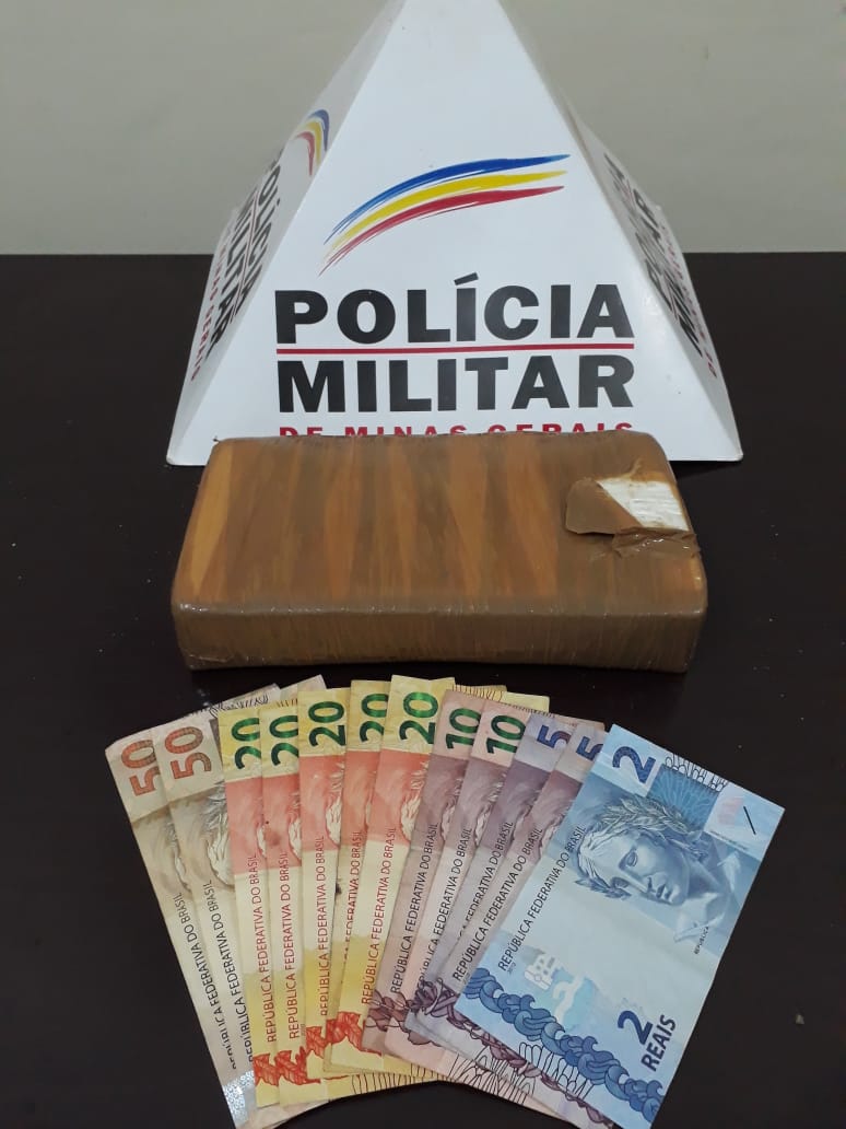 Os policiais conseguiram alcançar os indivíduos, que ao serem abordados, os PMs verificaram o objeto dispensado que foi constatado ser uma barra de cocaína.