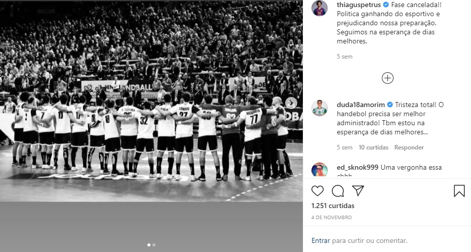 Na ocasião, Thiagus Petrus, capitão da seleção brasileira - ele ajudou a equipe a conquistar o ouro, em 2015, no Pan de Toronto (Canadá) - se manifestou no Instagram.
