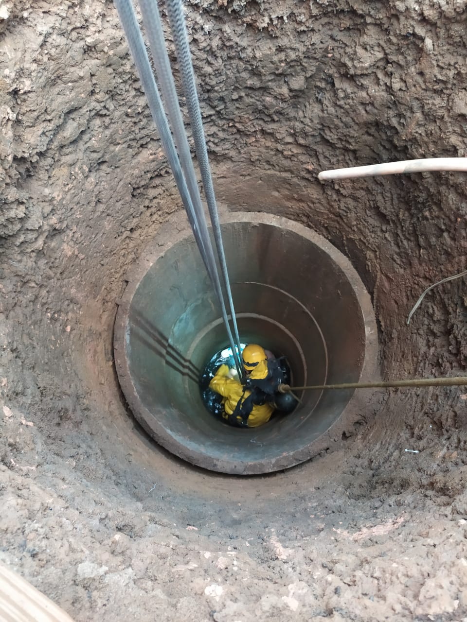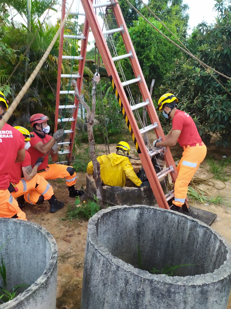 Nesta sexta-feira (12), o Corpo de Bombeiros atendeu um chamado de um resgate de cadáver dentro de uma cisterna de aproximadamente 8 metros de profundidade, na cidade de Esmeraldas-MG, no bairro Goiabeiras.