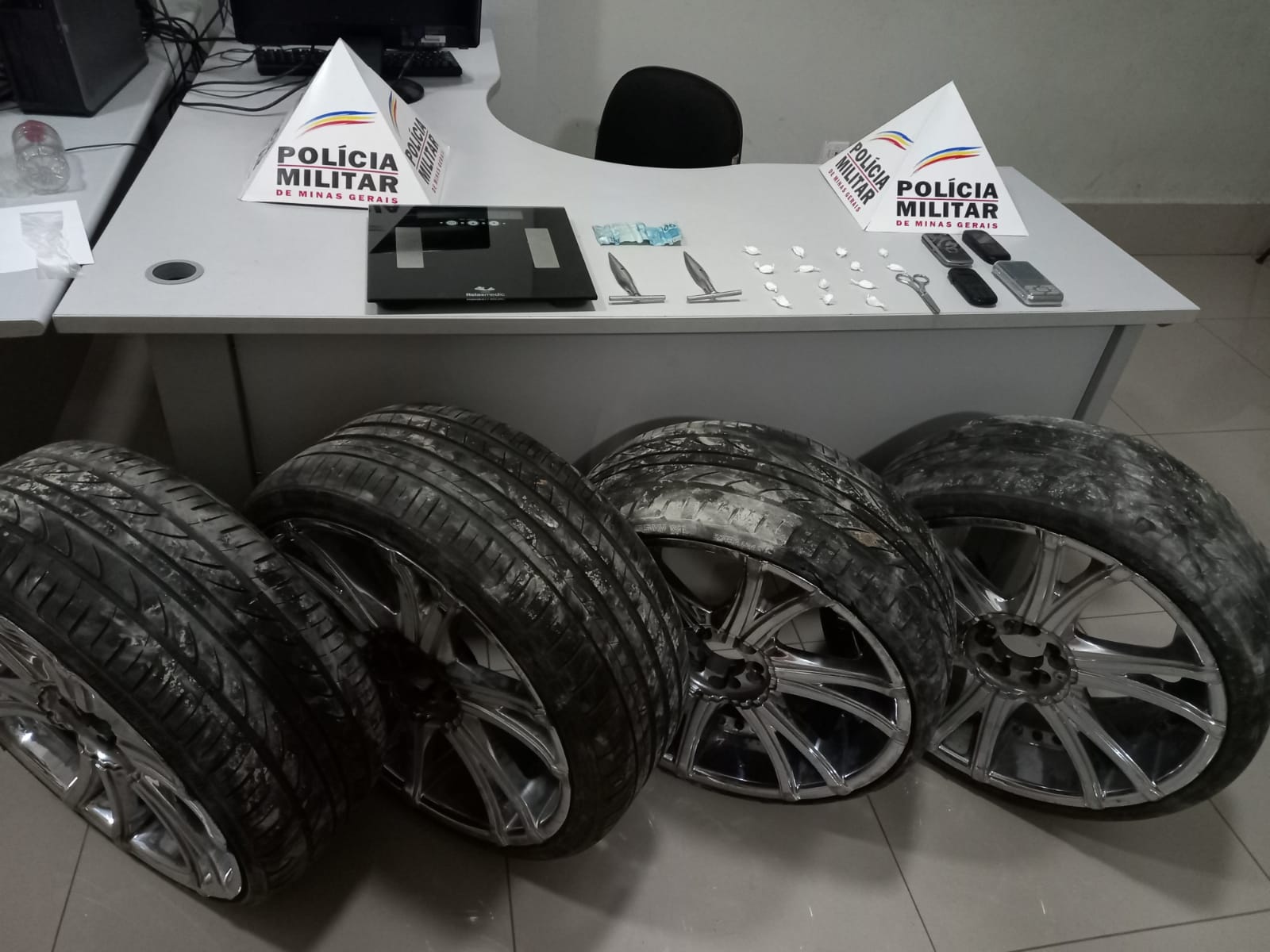 Além de droga, quatro rodas de liga leve foram apreendidas