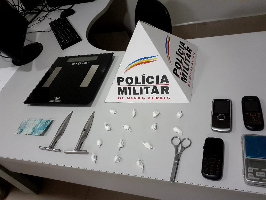 Entre os materiais apreendidos e também levados para a Depol, estavam: 14 buchas de cocaína, uma balança de precisão, uma balança digital, uma tesoura, três celulares, R$100 e quatro rodas de liga leve aro 20", possivelmente produtos de furto.