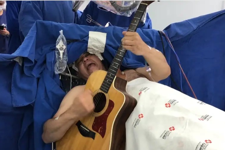No Hospital Cajuru, localizado em Curitiba e vinculado ao Sistema Único de Saúde (SUS), um homem de 55 anos surpreendeu a equipe médica e viralizou nas redes sociais ao tocar violão durante sua cirurgia de retirada de tumor cerebral. A performance de Maurício Alkinder Stemberg, o paciente, não parou apenas no instrumento; ele também aproveitou a oportunidade para exibir sua voz, cantando várias canções ao longo do procedimento, que teve duração superior a quatro horas.
