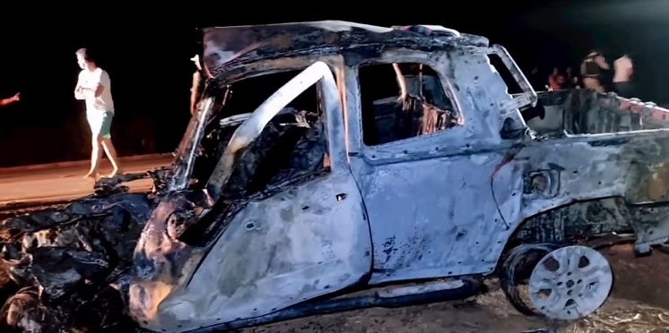 Logo após a batida, os veículos começaram a pegar fogo, mas o motorista do caminhão conseguiu sair a tempo. Cleiton Alties Cordeiro de Oliveira, de 33 anos, Mateus da Silva Oliveira, de 21, e Silas Rodrigues, de 36, são as vítimas fatais que estavam na caminhonete.