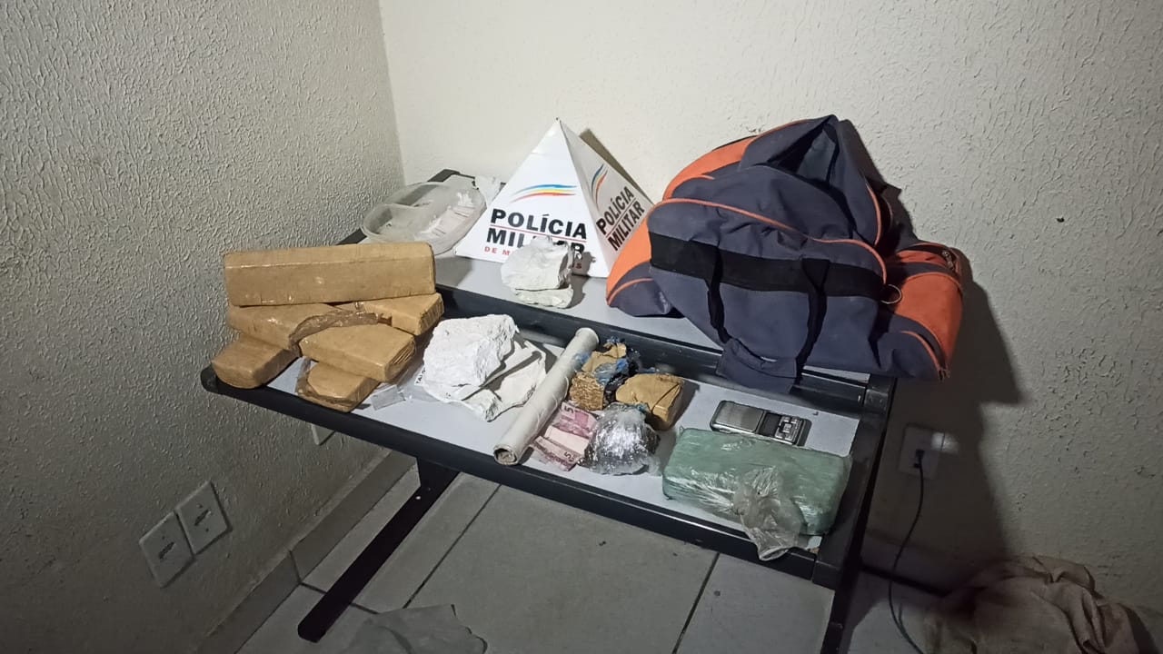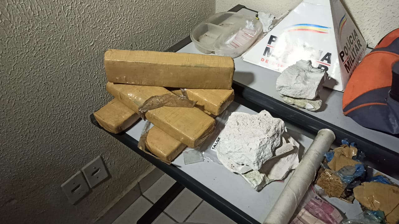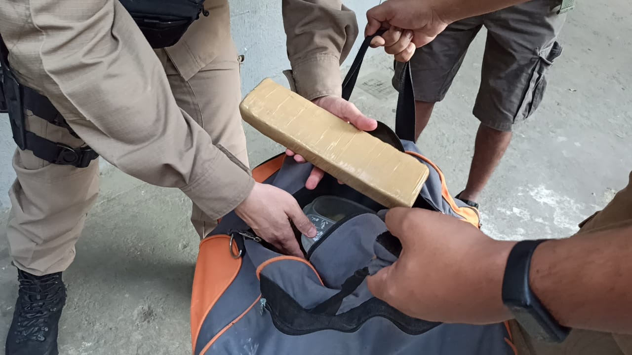 A PM recolheu esse material e foi constatado se tratar de uma barra de cocaína. Em seguida, com apoio da equipe Rádio Patrulha, os militares retornaram até a residência do suspeito, que foi abordado. Dentro da casa, foram encontrados os seguintes materiais: