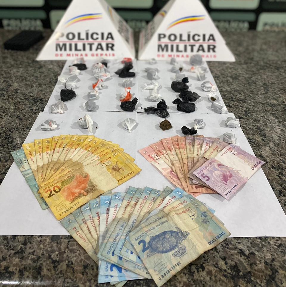 Foram encontradas mais de 40 buchas de maconha e uma quantia em dinheiro
