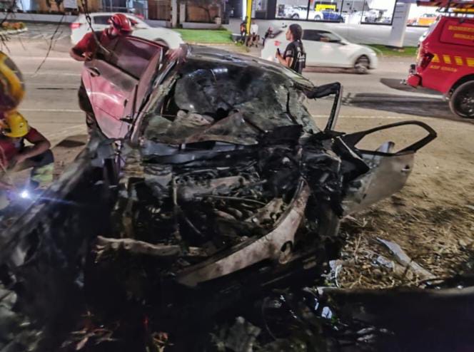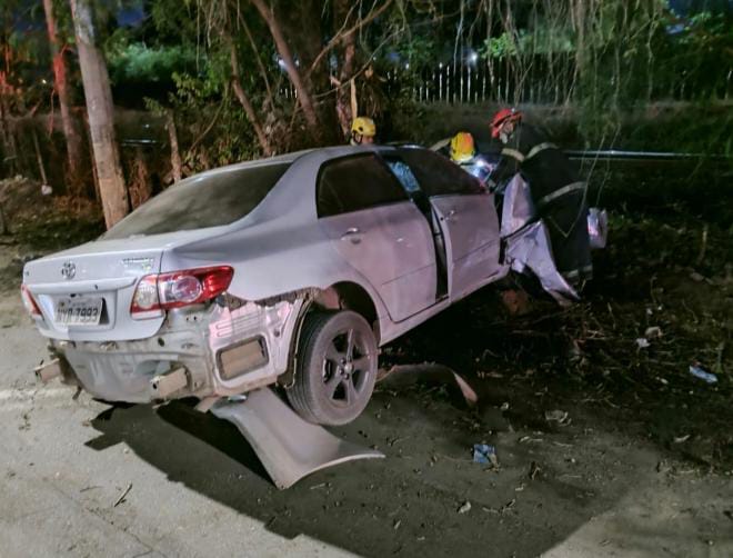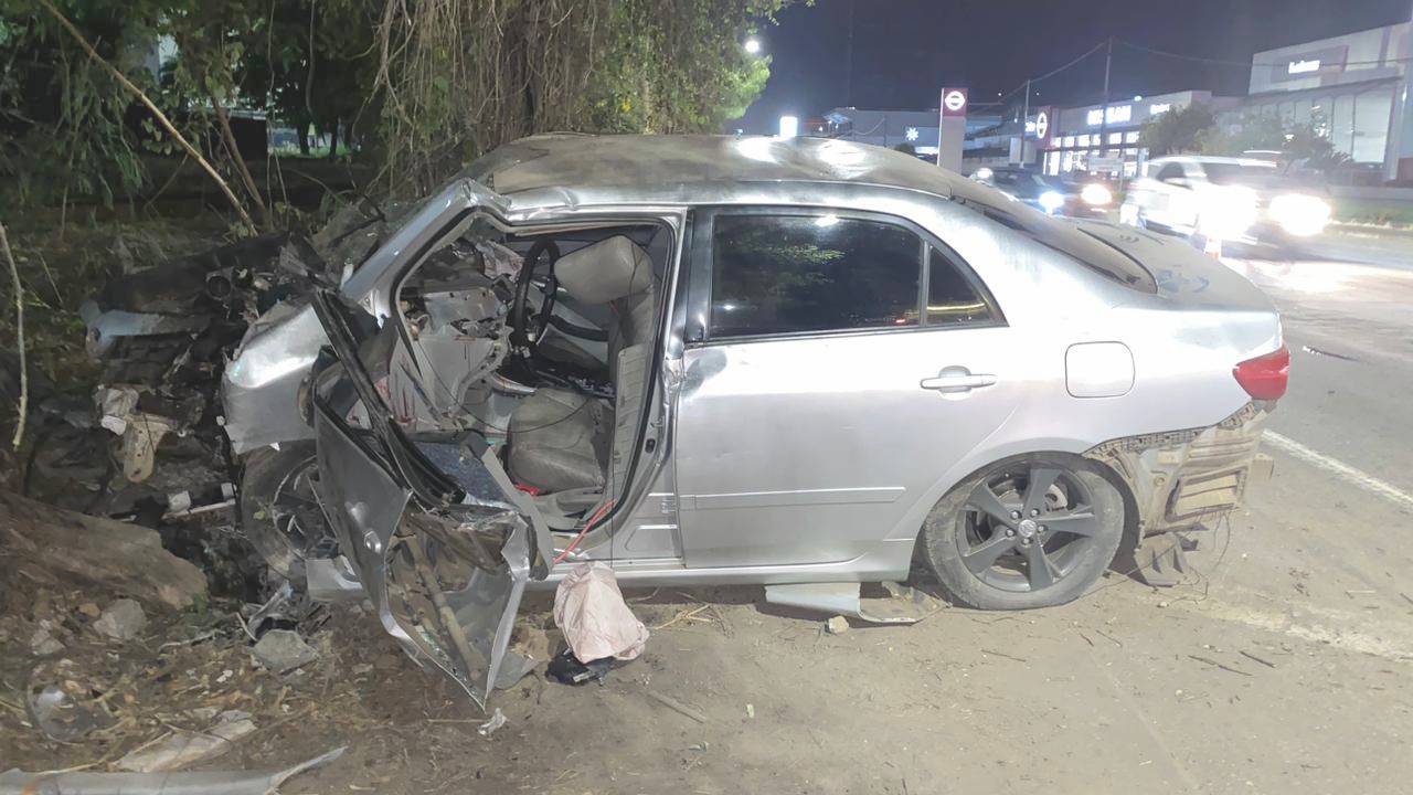 De acordo com as informações da passageira, o veículo transitava na pista da direita da rodovia em alta velocidade quando um outro veículo cortou sua frente abruptamente. Para evitar a colisão, o motorista desviou para a direita, perdendo o controle do veículo, que acabou colidindo contra uma cerca e uma árvore às margens da rodovia.
