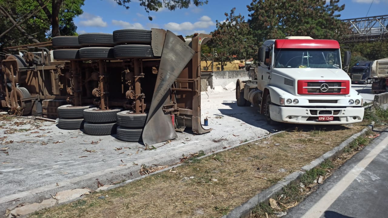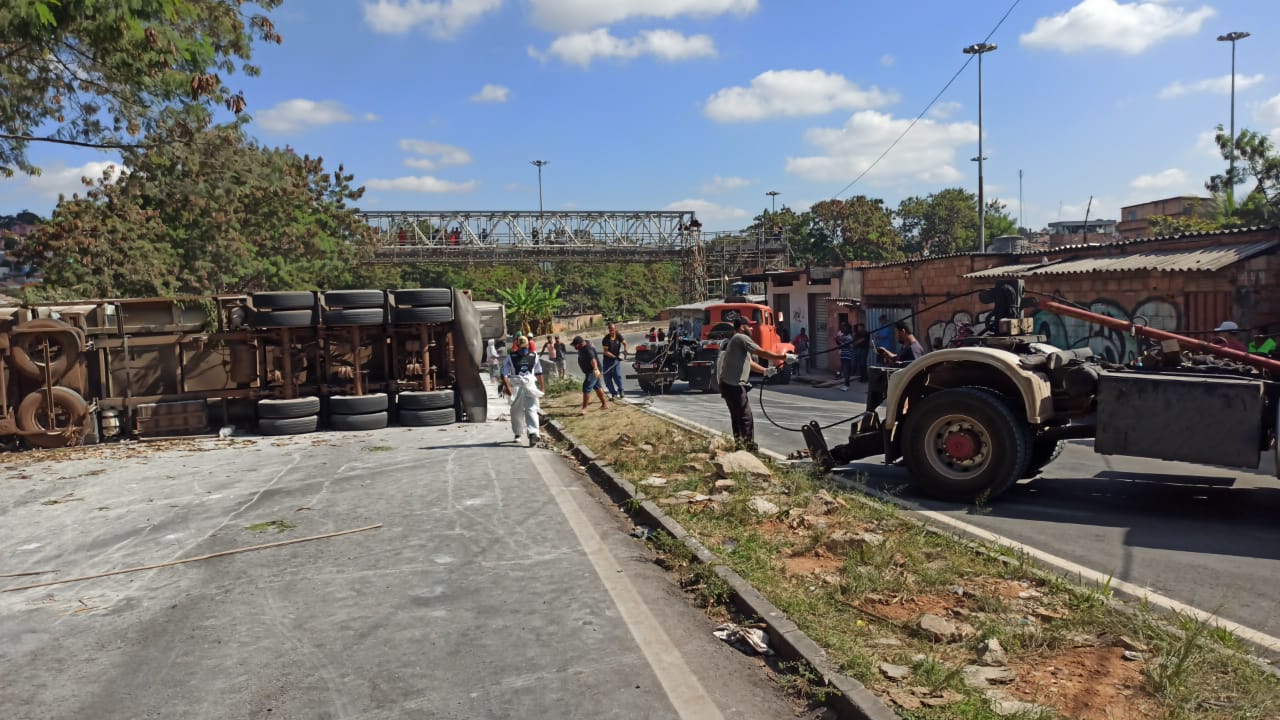 Segundo a Polícia Militar Rodoviária Estadual, que sinalizou o local, o condutor da carreta seguia no Anel Rodoviário sentido a BR 381, ao entrar no trevo teria perdido o controle direcional e tombado na pista. Mas o motorista não se feriu.