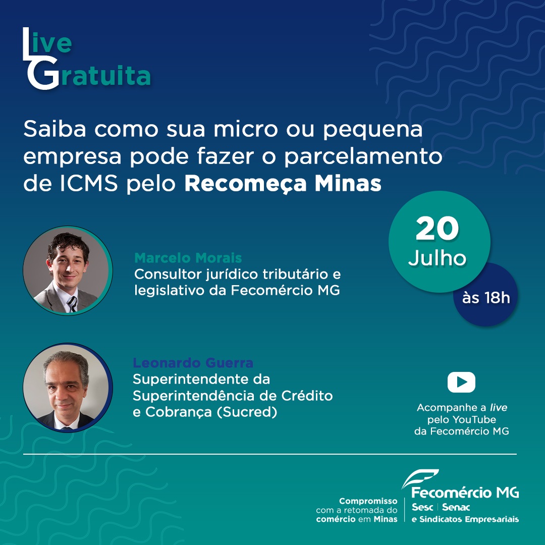 Permitir a regularização tributária para micros e pequenas empresas (ME’s e EPP’s). Com esse objetivo, o governo estadual criou o Refis para dívidas relativas ao Imposto de Circulação sobre Mercadorias e Serviços (ICMS). Mas a medida tem gerado dúvidas nos contribuintes sobre como parcelar seus créditos tributários, que não foram declarados no Simples Nacional. Para esclarecer as hipóteses de refinanciamento desse imposto, a Fecomércio MG promove no dia 20 de julho, às 18h, a live “Saiba como sua micro ou pequena empresa pode fazer o parcelamento de ICMS pelo Recomeça Minas”.