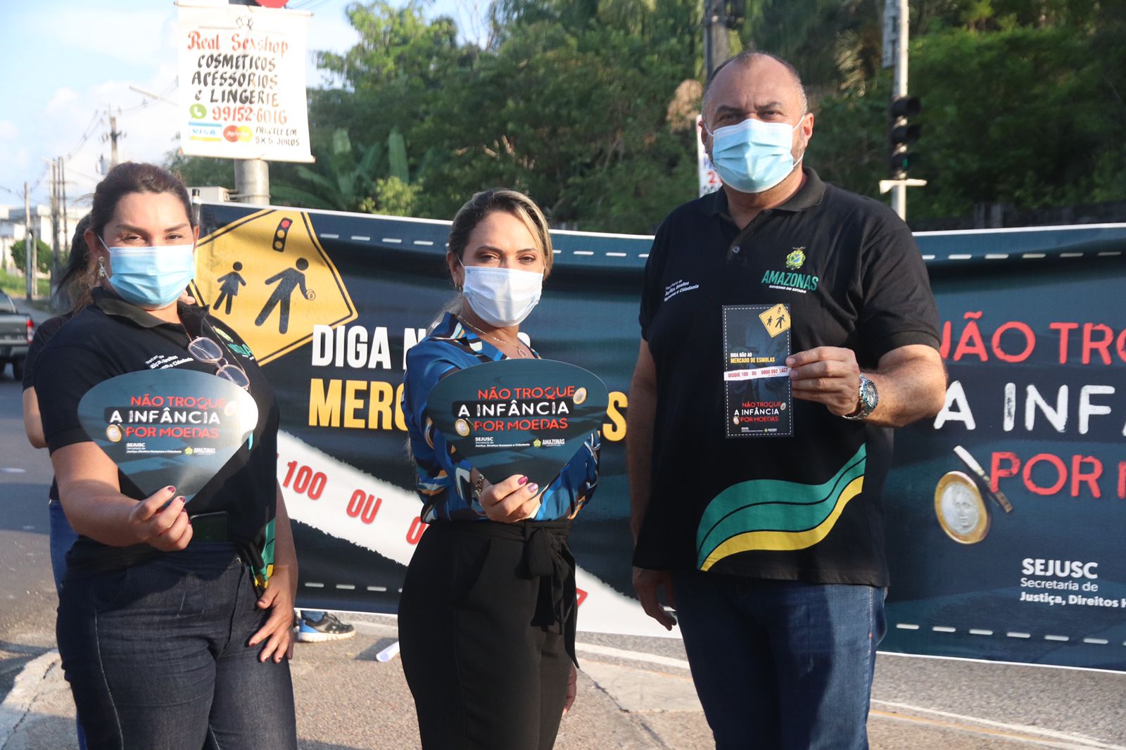 Apoio - A campanha “Não troque a infância por moedas” conta com o apoio da rede de proteção à crianças e adolescentes, composto pelo Conselho Tutelar de Manaus, Delegacia Especializada em Proteção à Criança e ao Adolescente (Depca), Tribunal de Justiça do Amazonas (TJAM) e Ministério Público do Amazonas (MPAM).