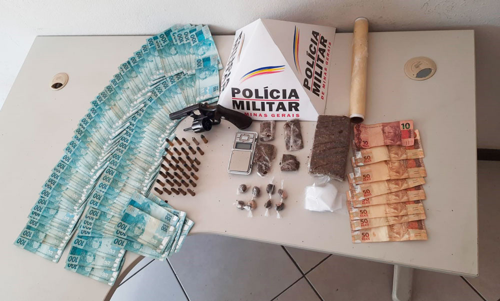 De acordo com os militares, foram realizadas buscas no interior da residência e foram localizadas meio quilo, buchas e pedaços menores de maconha; um revólver calibre .38; 35 munições calibre .38; uma balança de precisão e R$ 9.160,00. Diante dos fatos, o jovem foi preso e encaminhado à Delegacia de Polícia Civil. O material foi apreendido.