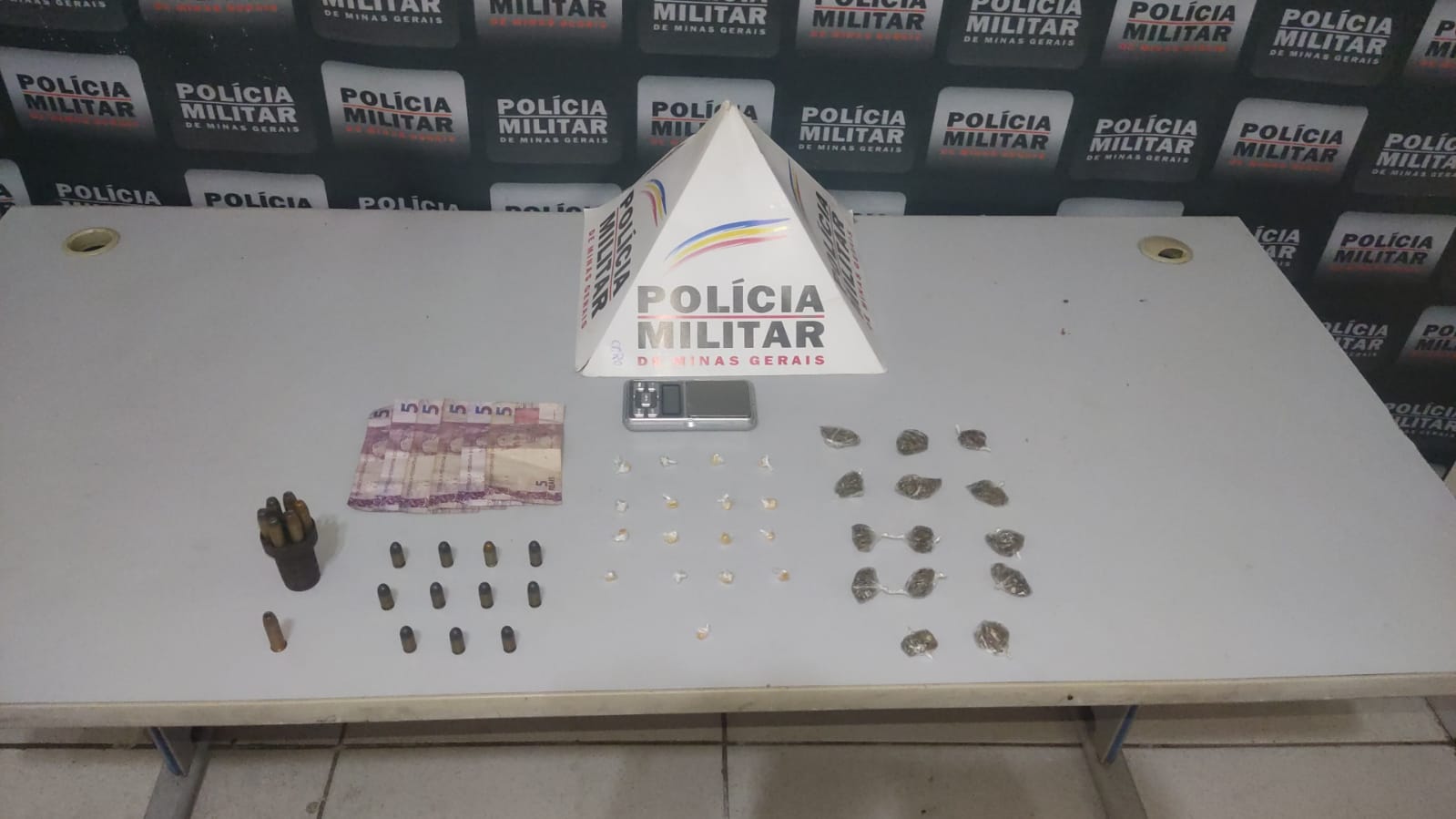 Após uma busca no interior do imóvel, foram encontrados mais drogas e dinheiro dentro de um guarda-roupa. Ao todo, foram encontrados e apreendidos os seguintes materiais: