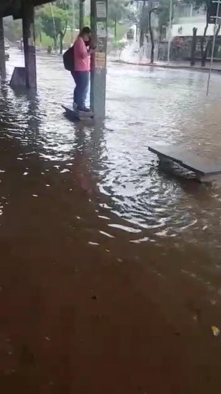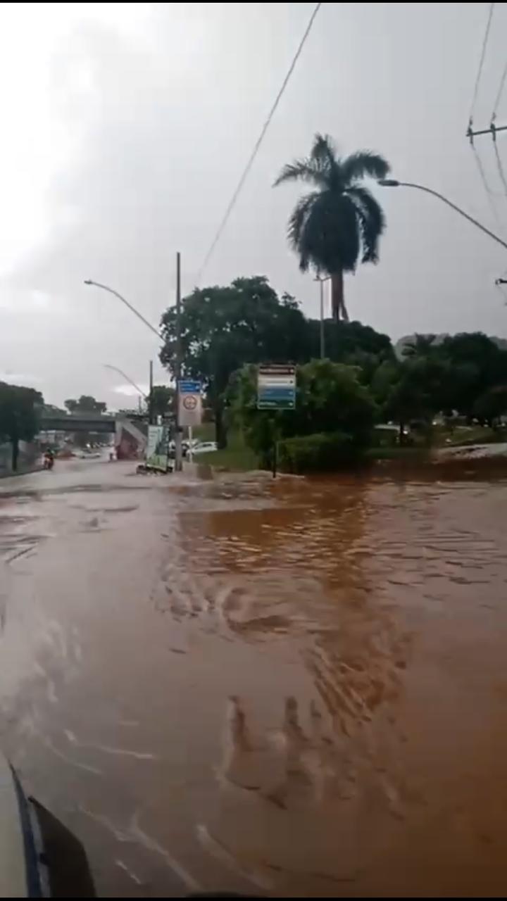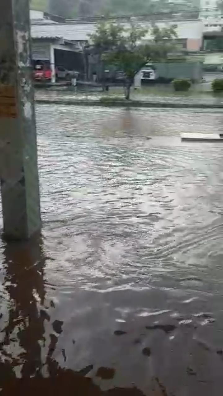 Vídeos que circularam nas redes sociais nesta tarde mostram a situação que a avenida ficou devido a pancada de chuva.