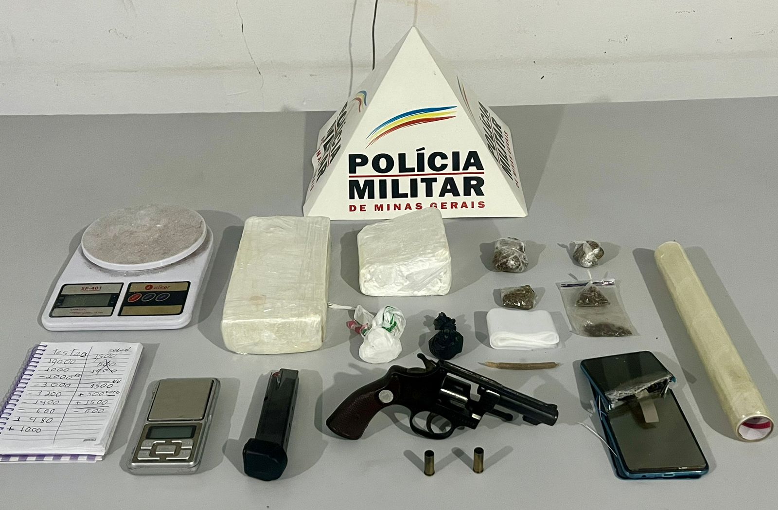 Mediante buscas e diligências complementares, foi apreendida grande quantidade de entorpecentes, material para dolagem, uma prensa hidráulica, documentos falsos, entre outros materiais.