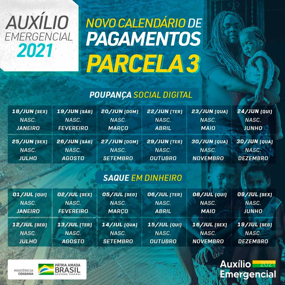 A Caixa Econômica Federal, em parceria com o Ministério da Cidadania, anunciou a antecipação dos pagamentos da terceira parcela do Auxílio Emergencial 2021. Com a nova escala, o pagamento começa na próxima sexta-feira (18).