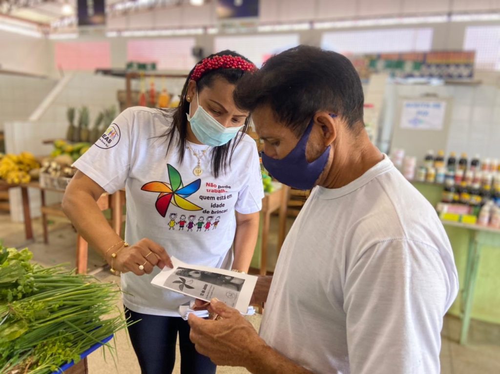 No Dia Mundial de Combate ao Trabalho Infantil, a Secretaria Municipal de Assistência Social (Semas) realizou no sábado (12) uma ação de abordagem social e conscientização da população para a prática do trabalho infantil. A equipe do Centro de Referência Especializado de Assistência Social (Creas) Cidadania, que atende a zona sul da capital, percorreu a Feira do Produtor, Feira Maluca e ainda o Shopping Popular de Macapá.