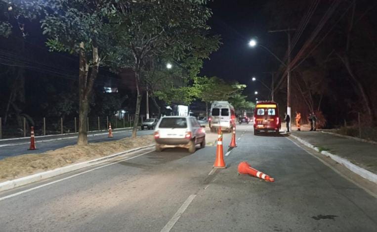 Militar colide com cone de sinalização e é hospitalizado com possível fratura na perna