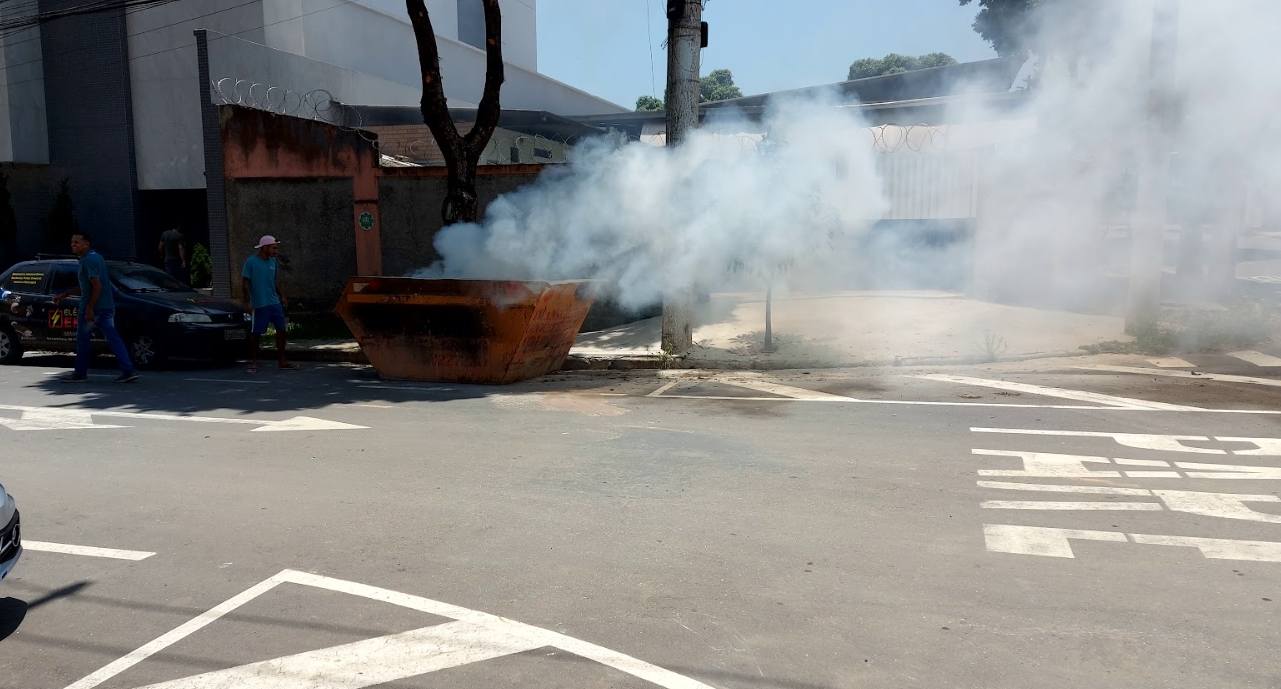 Nesta quarta-feira (15), às 11 horas aproximadamente, na esquina da rua Caviúna com a rua Jequitibá, bairro Horto, Ipatinga, Minas Gerais, foi ateado fogo em uma caçamba de recolhimento de entulhos.