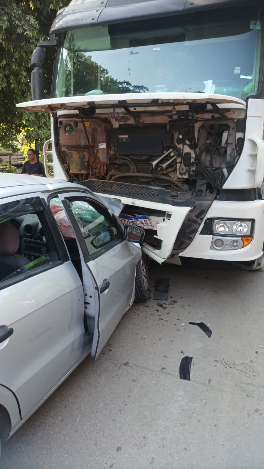 Homem fica ferido em batida entre carro e carreta em Cava Grande