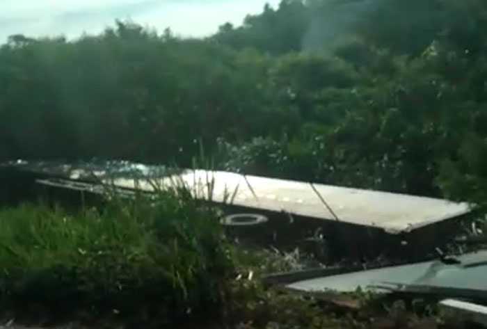 Pelas imagens é possível ver que, por conta do acidente, uma das carretas saiu da pista e tombou às margens da rodovia. O acidente teria acontecido próximo a entrada de um hotel fazenda.