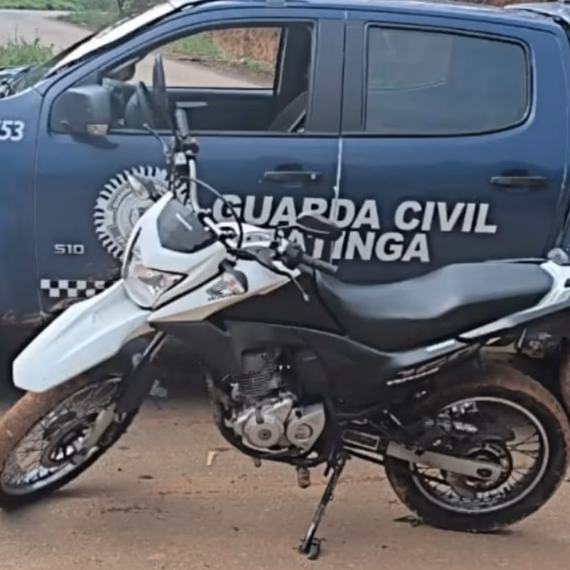 Uma motocicleta furtada e apontada como utilizada em um assalto foi localizada pela Polícia Municipal em uma via de acesso entre o bairro Bom Jardim, em Ipatinga e o município de Coronel Fabriciano.