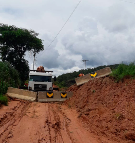“13:30. Sobre interdição em Nova Era: NÃO HÁ DESVIO NO LOCAL, máquinas do DNIT apenas limparam a vegetação para ter acesso ao local, mas o terreno NÃO TEM ESTABILIDADE para liberação do tráfego. Inclusive, este acesso acaba de ser fechado com barreiras físicas”.