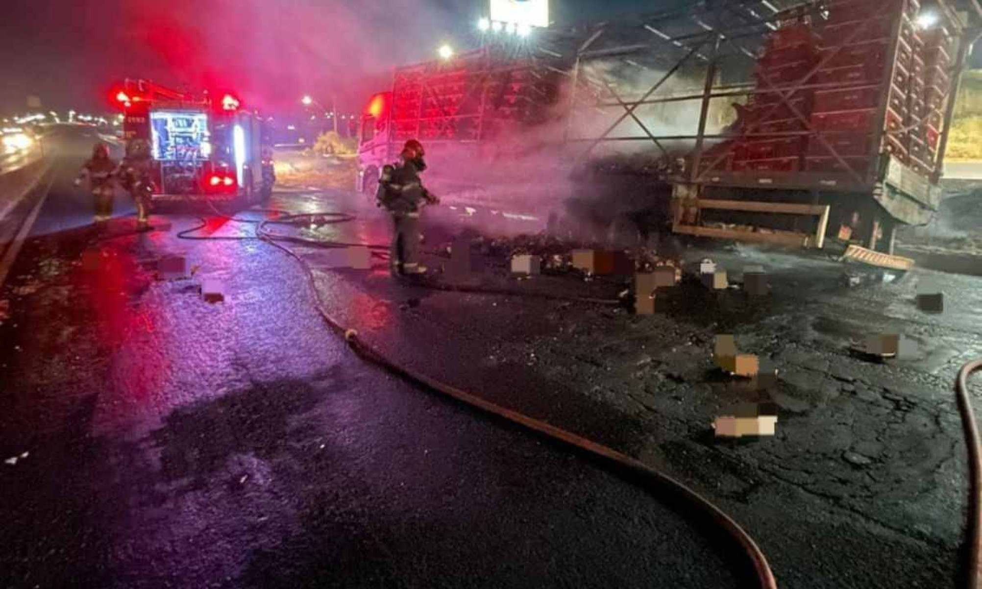 O Corpo de Bombeiros Militar de Minas Gerais (CBMMG) foi acionado por volta das 2h para controlar o fogo, que começou no pneu do veículo e se espalhou rapidamente, atingindo a carga viva. Segundo o CBMMG, a suspeita é que as chamas tenham iniciado em uma das rodas e se propagado para a parte central do caminhão. Mais de 1.500 frangos morreram queimados.