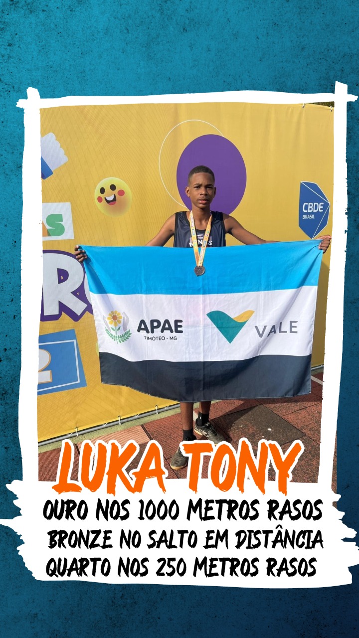 Todos os atletas da Apae de Timóteo subiram ao pódio. Luka Tony Gregório, foi ouro nos 1.000 metros rasos, bronze no salto em distância e ficou em quarto lugar nos 250 metros rasos. Débora Batista da Silva, ganhou medalha de ouro no salto em distância e bronze nos 150 metros rasos. Isabela Estefani, ouro nos 150 metros rasos e bronze no salto em distância. Charles dos Santos, recebu medalha de ouro no salto em distância. Pedro Henrique Gomes, prata no arremesso de peso e bronze no salto em distância. E Samuel Henrique, que ganhou medalha de prata no arremesso de peso. Além dos seis campeões, a Apae de Timóteo contou com dois representantes na comissão técnica da seleção: os técnicos Sildemar Venâncio e Bruno Flávio Moura.