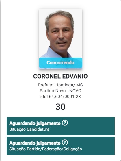 CORONEL EDVANIO vai concorrer pelo Partido Novo - NOVO. Ele tem 55 anos e é natural de Divino Das Laranjeiras - MG. É a primeira vez que disputa eleição para prefeito de Ipatinga. A vie é Pastora Erica, do Partido Novo.