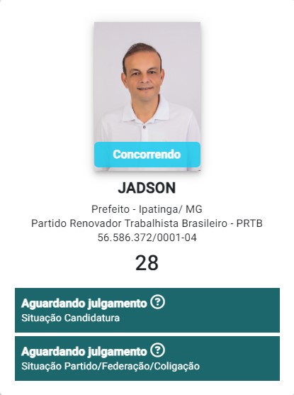 JADSON vai concorrer pelo Partido Renovador Trabalhista Brasileiro - PRTB. Ele tem 43 anos e é natural de Ipatinga - MG. É a segunda vez que disputa eleição para prefeito de Ipatinga. Já foi vereador da cidade. O vice é Noé Da Defesa Civil, do PRTB.