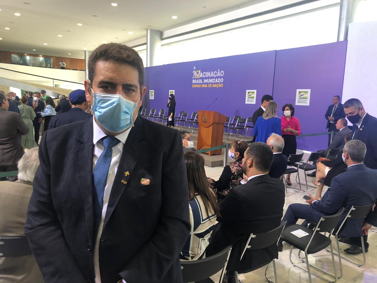 O prefeito de Coronel Fabriciano, Dr. Marcos Vinicius participou nesta quarta-feira (16) do lançamento do Plano Nacional de Imunização contra a Covid-19, em Brasília. Acompanhado do secretário de Governança da Saúde, Ricardo Cacau, Dr. Marcos aproveitou a ocasião para apresentar, diretamente, ao Ministério da Saúde as informações referentes aos públicos-alvo prioritários, doses necessárias e estrutura da rede municipal, que já está pronta para receber e aplicar as doses.