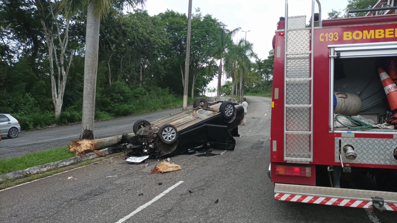 De acordo com o Corpo de Bombeiros, eles receberam informações de um capotamento de veículo com vítimas presas nas ferragens. Diante desta informação, deslocaram-se ao local e, ao chegar, se depararam com a condutora fora do veículo, consciente, orientada e sem ferimentos.