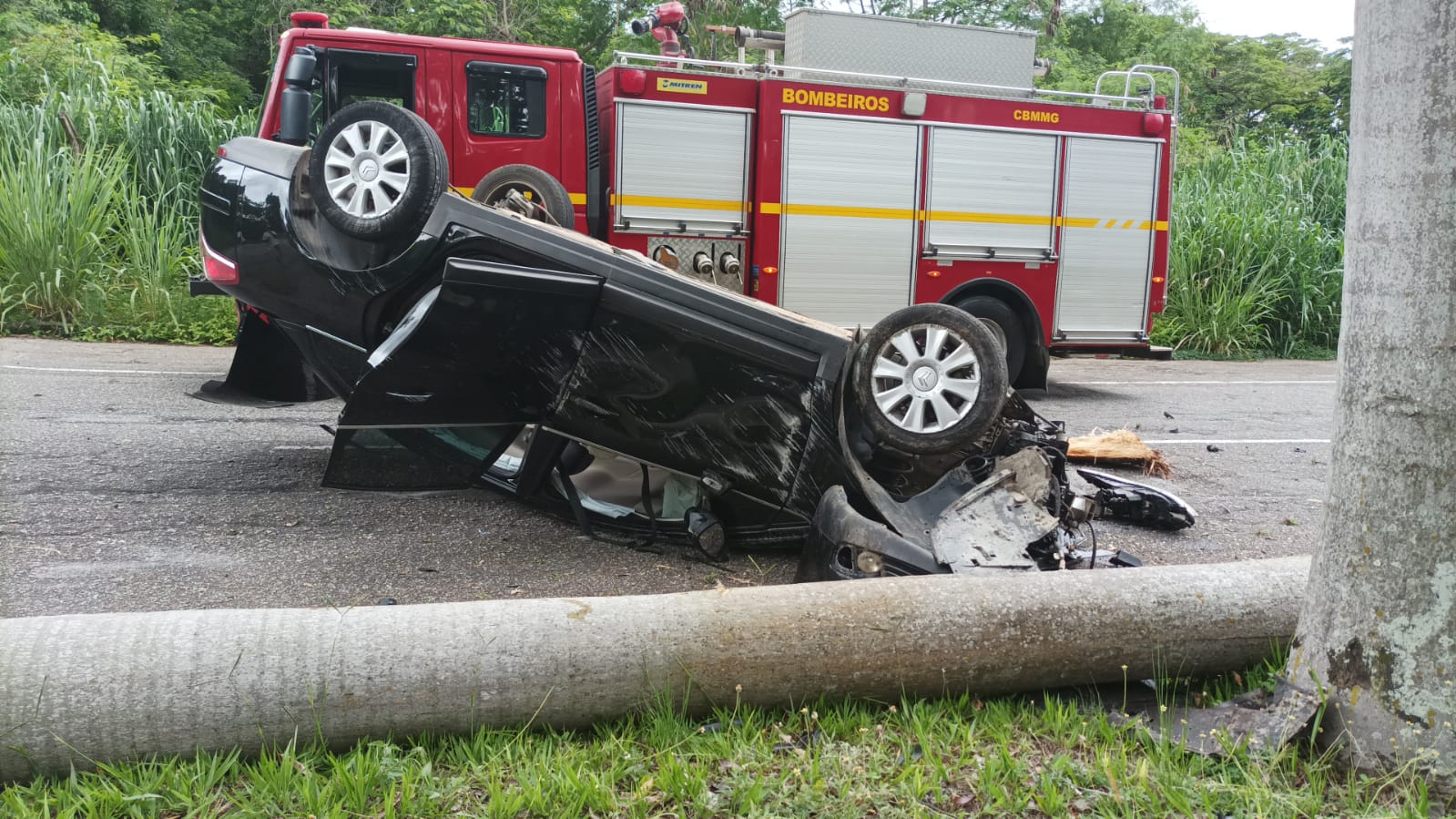 Uma mulher, de 67 anos, perdeu o controle do veículo, bateu em uma árvore e ficou com as rodas do carro para cima na Avenida Usiminas, no bairro das Águas, em Ipatinga, Minas Gerais. O fato foi registrado na tarde desta sexta-feira (16).
