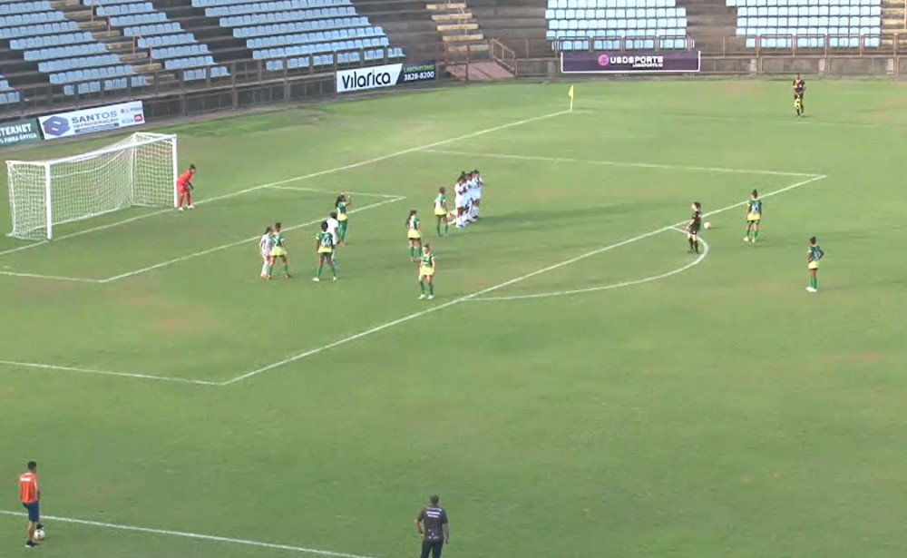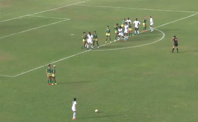 Aos 28’ minutos, após cobrança de falta, Cacá conseguiu cabecear, mesmo desequilibrada, e abriu o placar para o time visitante. E em mais uma bola parada, seis minutos depois, Alana saiu sem marcação e cabeceou, aumentando o placar.