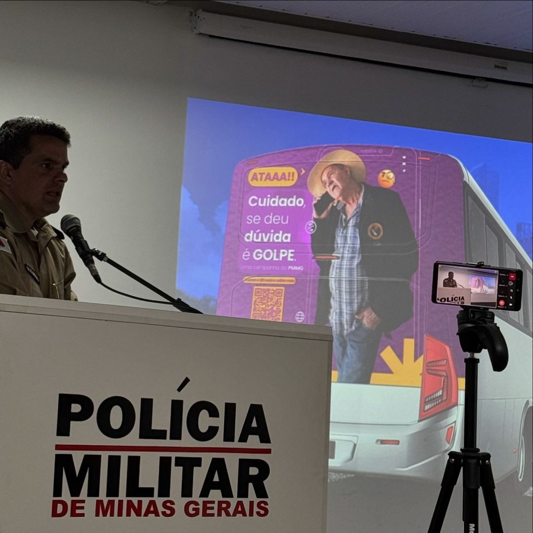 A Polícia Militar de Minas Gerais (PMMG) lançou, nesta quinta-feira (17/10), a megacampanha “Se deu dúvida, é golpe!”. O objetivo da instituição é chamar a atenção e conscientizar a população mineira, principalmente os idosos, sobre a atuação de criminosos que utilizam a internet para aplicar os mais diversos golpes de estelionato, como pix errado, promoções tentadoras, falsos atendentes de bancos, cupons de descontos e boletos falsos. A campanha tem o influencer Tião Bruto Sistemático como garoto-propaganda. Assista à chamada na Live.
